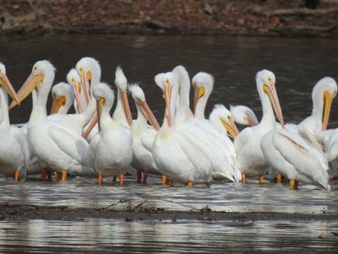 Sunday morning we attended a phenomenal presentation about bats with special appearances by a fruit bat that was really comical. There are 45 species of bats in the U.S. and 16 are found in Alabama. They are crucial to our environment for insect control. The endangered grey bat is present in caves around Wheeler and highly protected. Then we returned to the refuge to enjoy the presence of the cranes and to our amazement came across several hundred white pelicans in the body of water across from the main entrance to the refuge. We watched the squadrons land individually in the water and slide into the rest of the pod. It was like watching airplanes land on an aircraft carrier. Spectacular! It was a very special trip for all of us and we really didn’t want to leave. But we vowed to return next year to stand in the midst of the majesty of nature at its best.