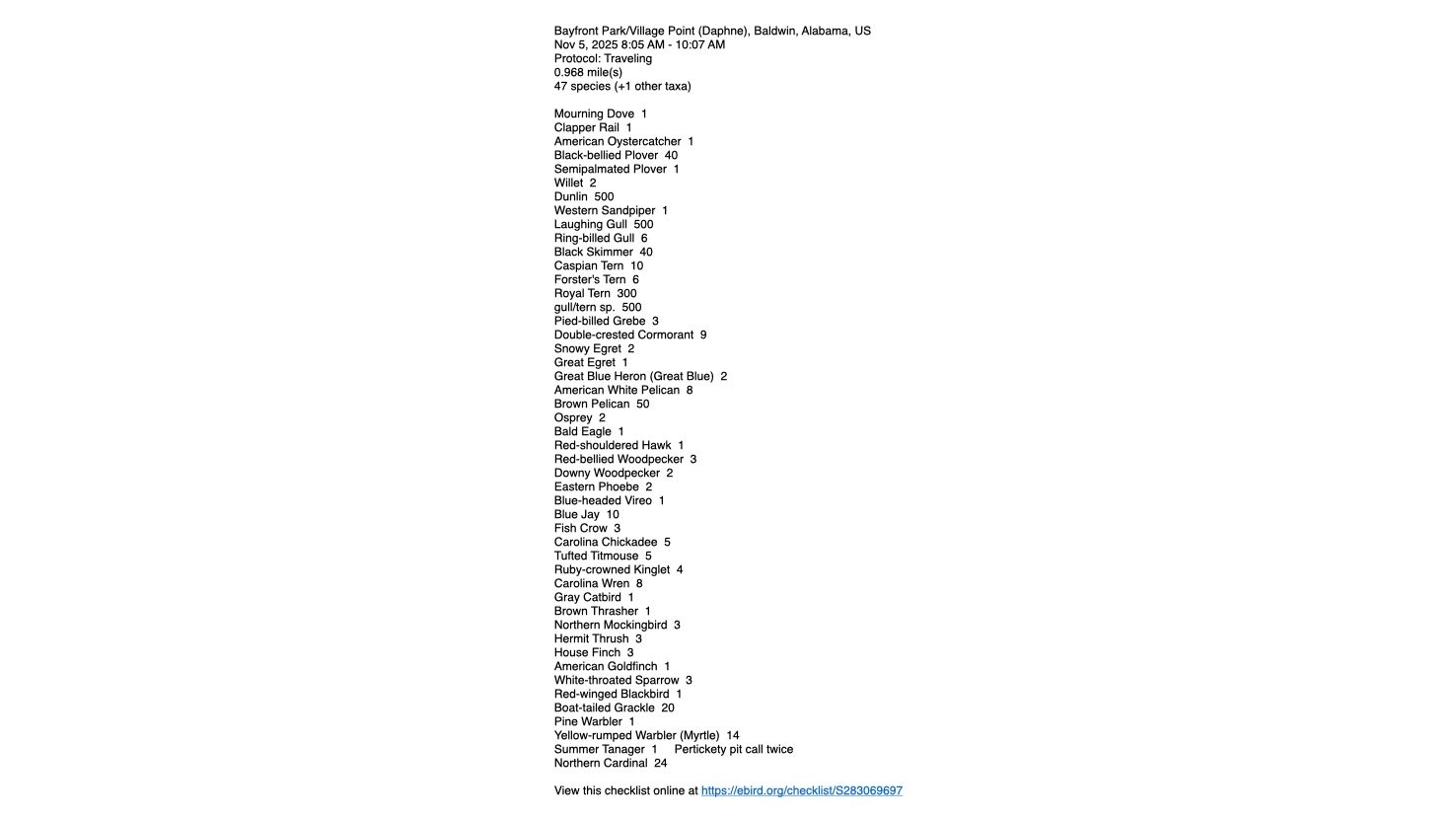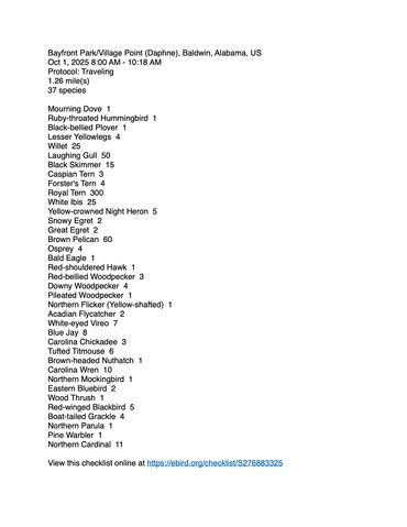 Welcome to Mobile Bay Audubon Society's website, updated 9AM November 6, 2025